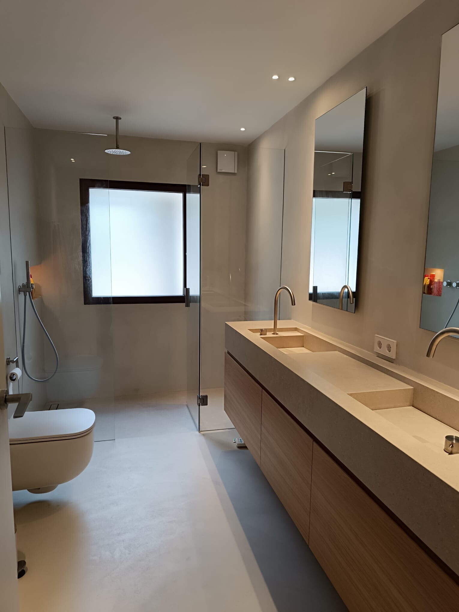 Nos apasionan los proyectos que nos permiten explorar la versatilidad del microcemento. Desde el microcemento fino para paredes y suelos con menor tránsito, hasta las formulaciones más resistentes para suelos de alto tránsito . También trabajamos con microcemento para exteriores como el Microstone y, por supuesto, microcemento específico para piscinas, garantizando acabados impermeables y duraderos.